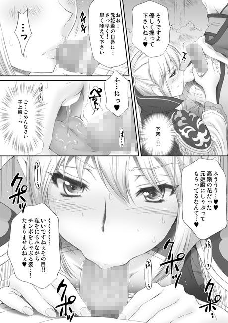 寂しさから司○昭の事を思いつつオナニーしてしまう○元姫。だが、その痴態を文官に見られてしまい脅される事になってしまう。外で恥ずかしい事をしていたのをバラされたくない元○は唇をかんで文官の言いなりになるのだった…。