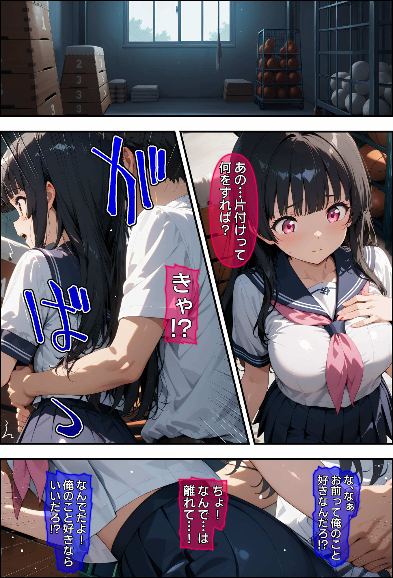 体育倉庫で滅茶苦茶壊される漫画です。