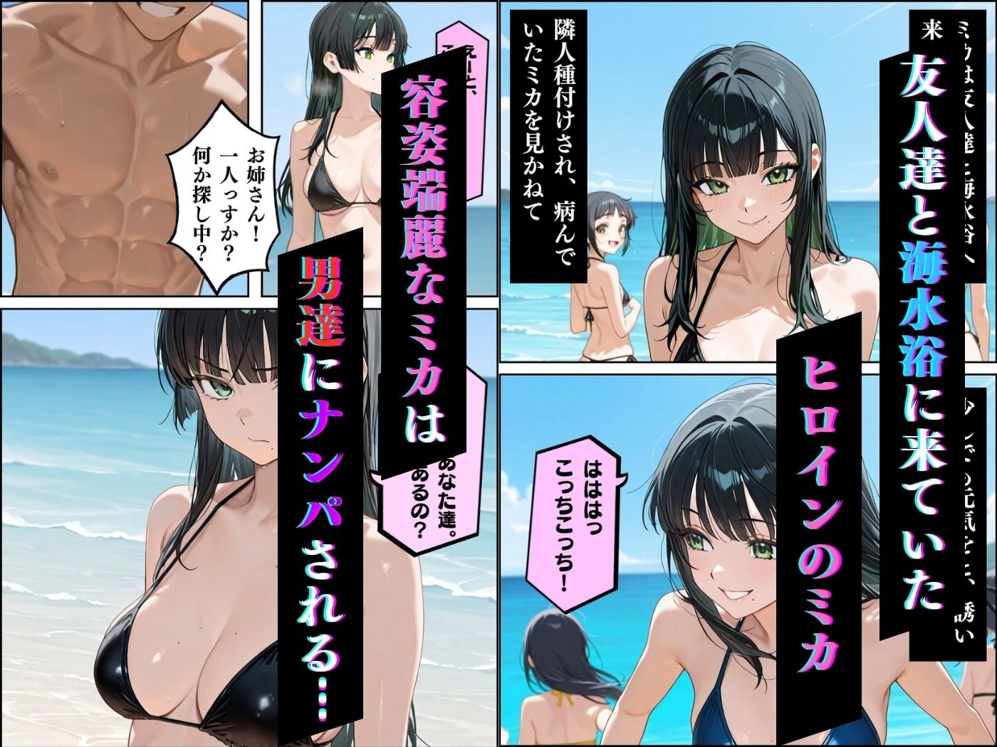※顔や胸の見栄えを優先している為、指などの細かい部分や男性の体などに、生成AI特有の乱れがみられる場合がございますが、ご容赦ください。