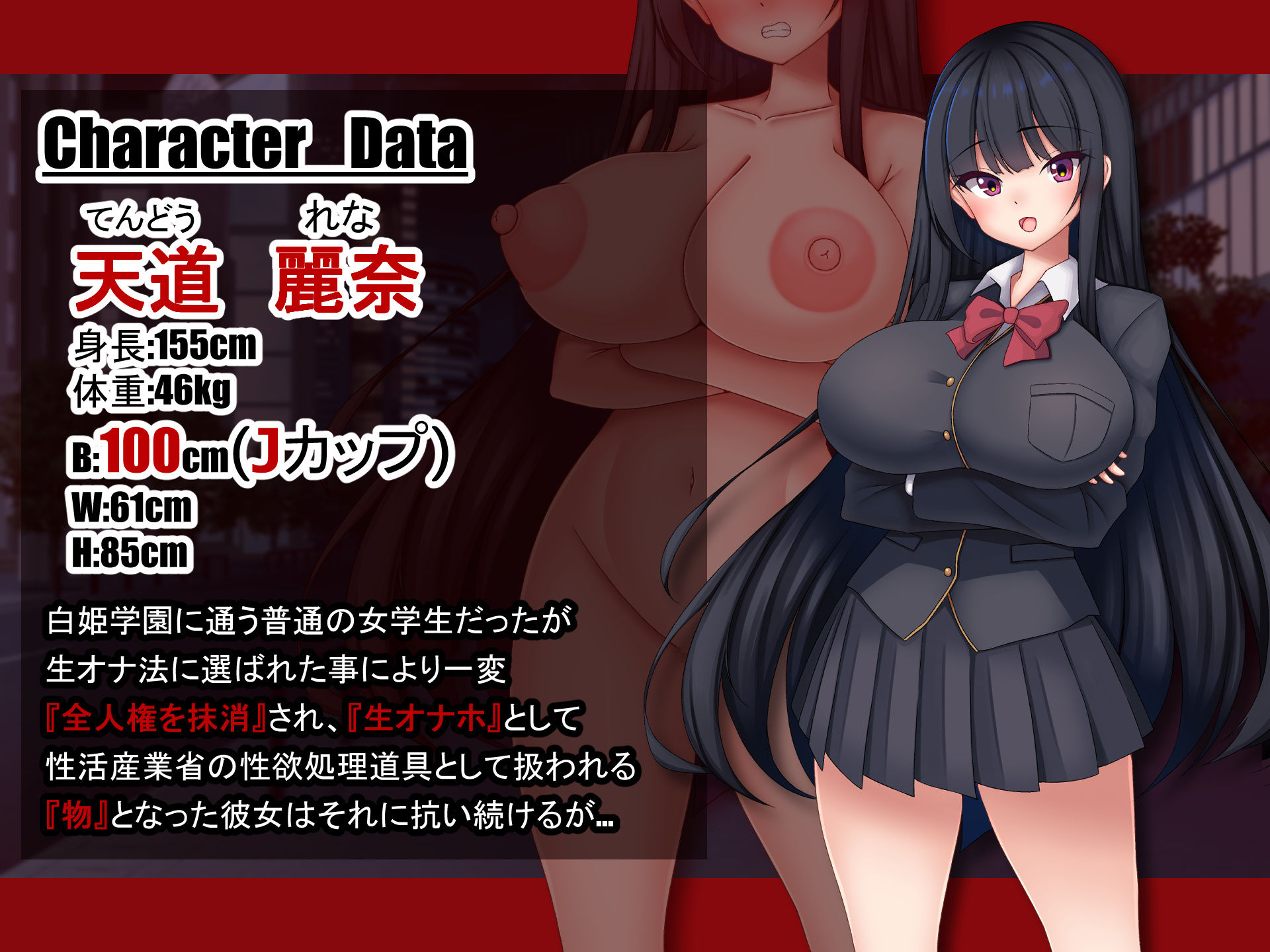 本作は巨乳黒髪クール系女子校生が『生オナホ』に選ばれ