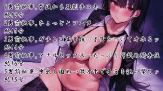 ジャンル: 中出し、男性向け、成人向け、バイノーラル、手コキ、ささやき、学生、KU100