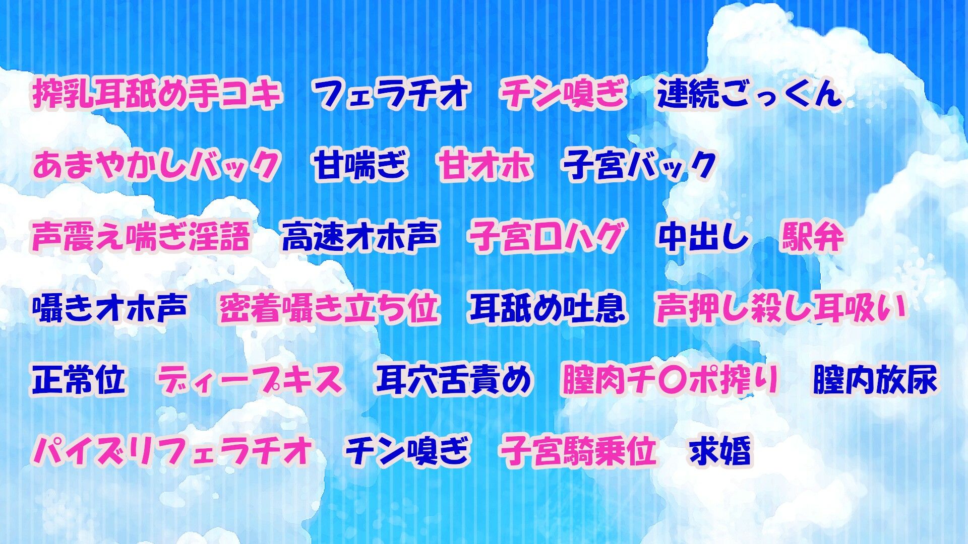 ジャンル: 処女、学園もの、幼なじみ、中出し、フェラ、ごっくん、ラブラブ・あまあま、男性向け、成人向け、手コキ、ささやき、オホ声