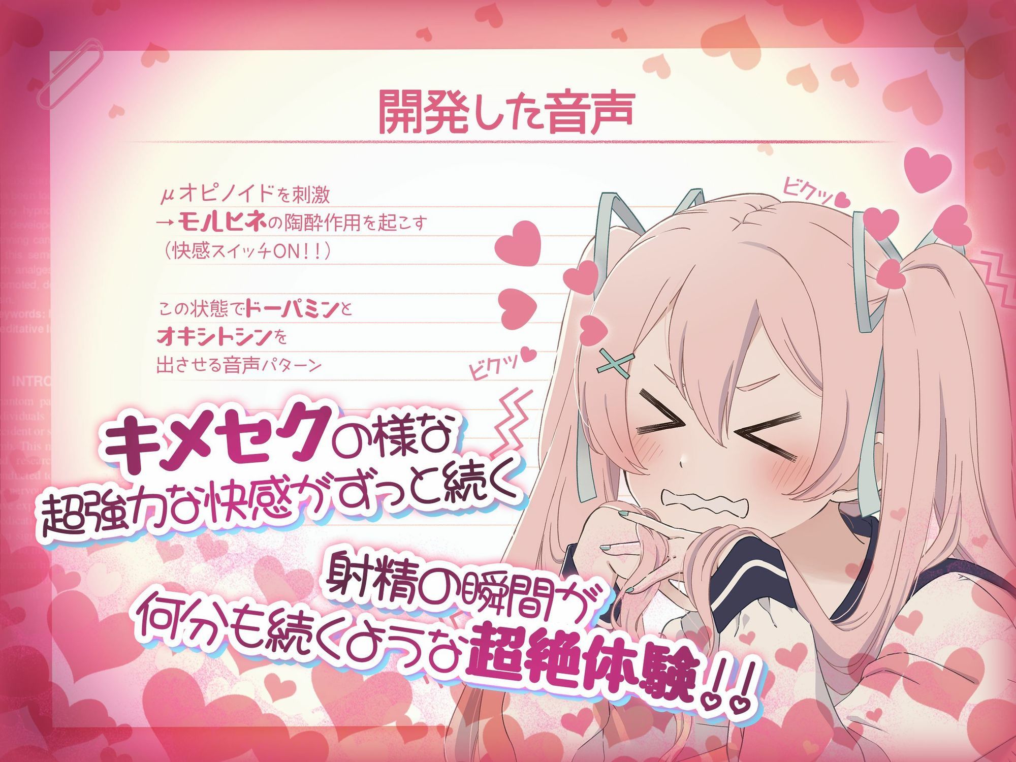 今回私たちが開発したのは、特殊な音声パターンと催〇技術を組み合わせることで、聴くだけでドーパミン、オキシトシンが分泌される音声です!
