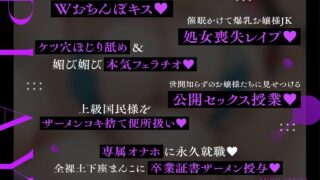 今すぐ読む!(最大99%OFFクーポン)完全版を今すぐ読む!(最大99%OFFクーポン)【密着淫語囁き】催●おまんこコレクション 〜絶対服従お嬢様JKオナホハーレム〜【KU100】発売日: 2025年11月15日ボリューム: 8本 (約11...